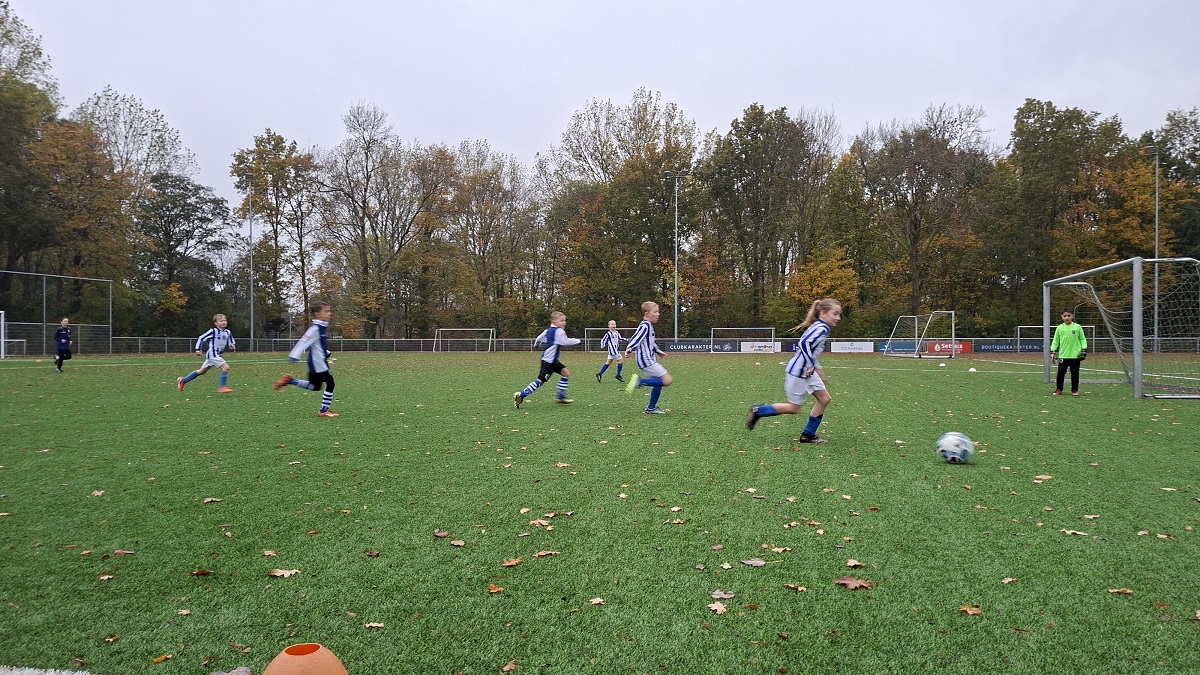 In de dug out werd tijdens de rust even snel een kan limonade achterover geslagen en al snel kwamen de sterspelers weer het veld op. De eer aan Julia dit keer om het doel schoon te houden. Nog gretiger dan in de eerste helft vielen onze toppers gelijk de bal aan op het startsignaal. Strakke 1-2’tjes van Jason en Noud, onnavolgbare pingels van Feline, scherpe scharen van Jens, ondoordringbaar verdedigingswerk van Serwa en de onvermoeibare druk van Koen en Mick op ADO resulteerde uiteindelijk in een 21-2 voor onze JO9. Een fantastisch resultaat in een wedstrijd waarin het zowel pijpenstelen als doelpunten regende.